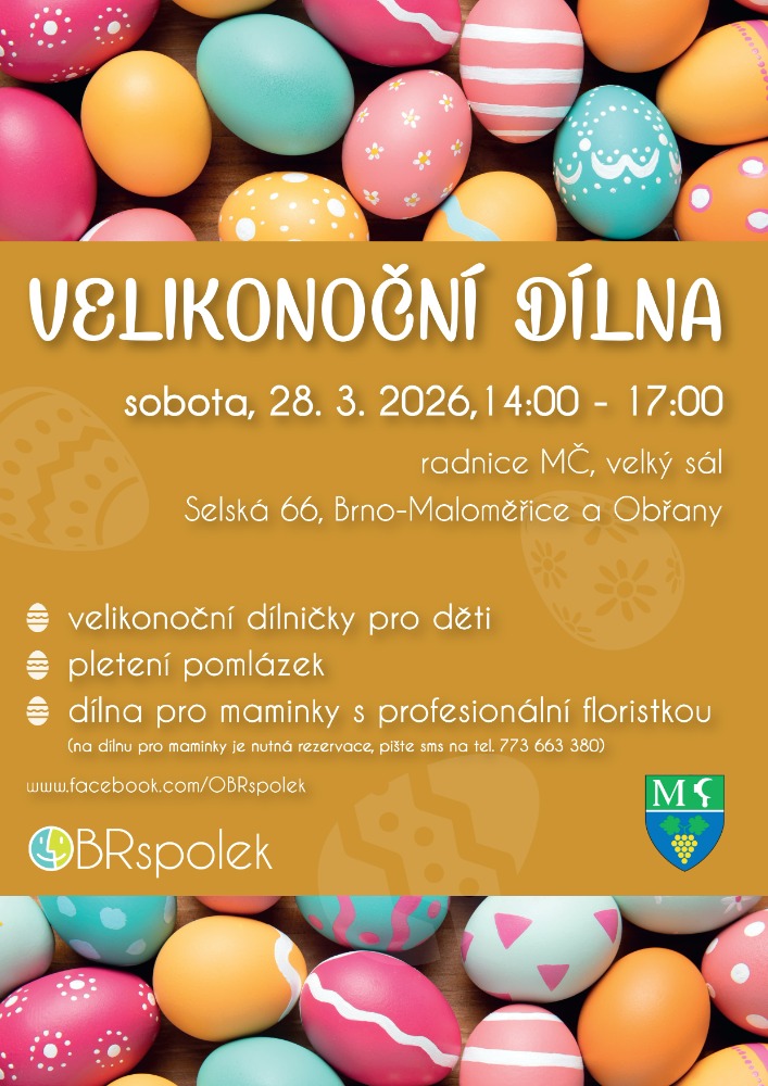 neděle 24. března 2024 Sál radnice, Selská 66, Maloměřiceod 14 do 18 hod.